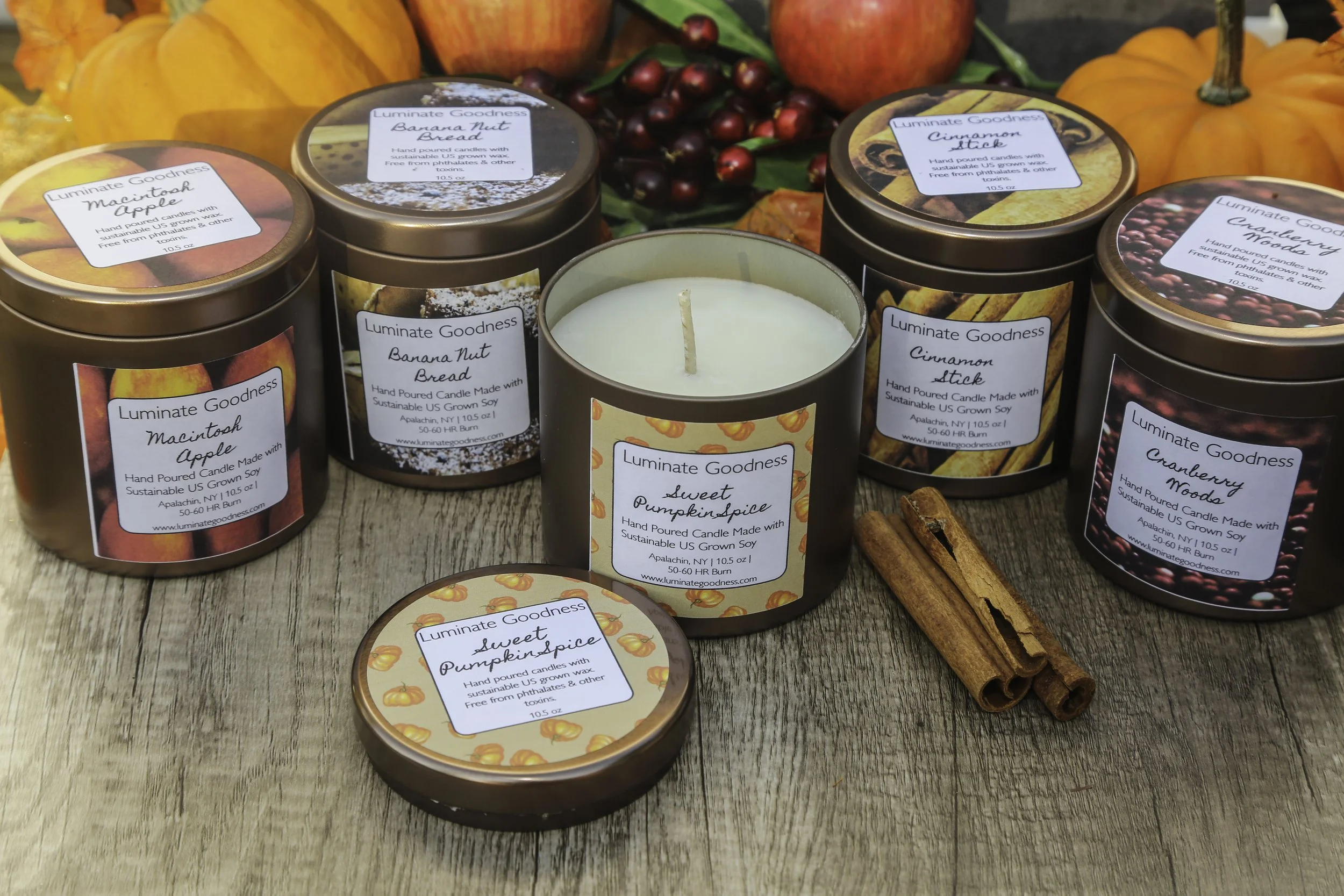 Luminate Goodness LLC is a candle company based in Apalachin NY. Founded on the idea that candles should be produced ethically and with clean scents so when you light up, you truly are lighting up goodness! All candles are composed with sustainable grown soybeans produced in the US. Soy wax is biodegradable unlike paraffin wax which is derived from petroleum and produces petro-carbon soot. Burning candles, which contain these toxins and carcinogens can be harmful to our health. This is why soy candles are an excellent alternative! You can rest assured your soy candle is giving you a clean burn.