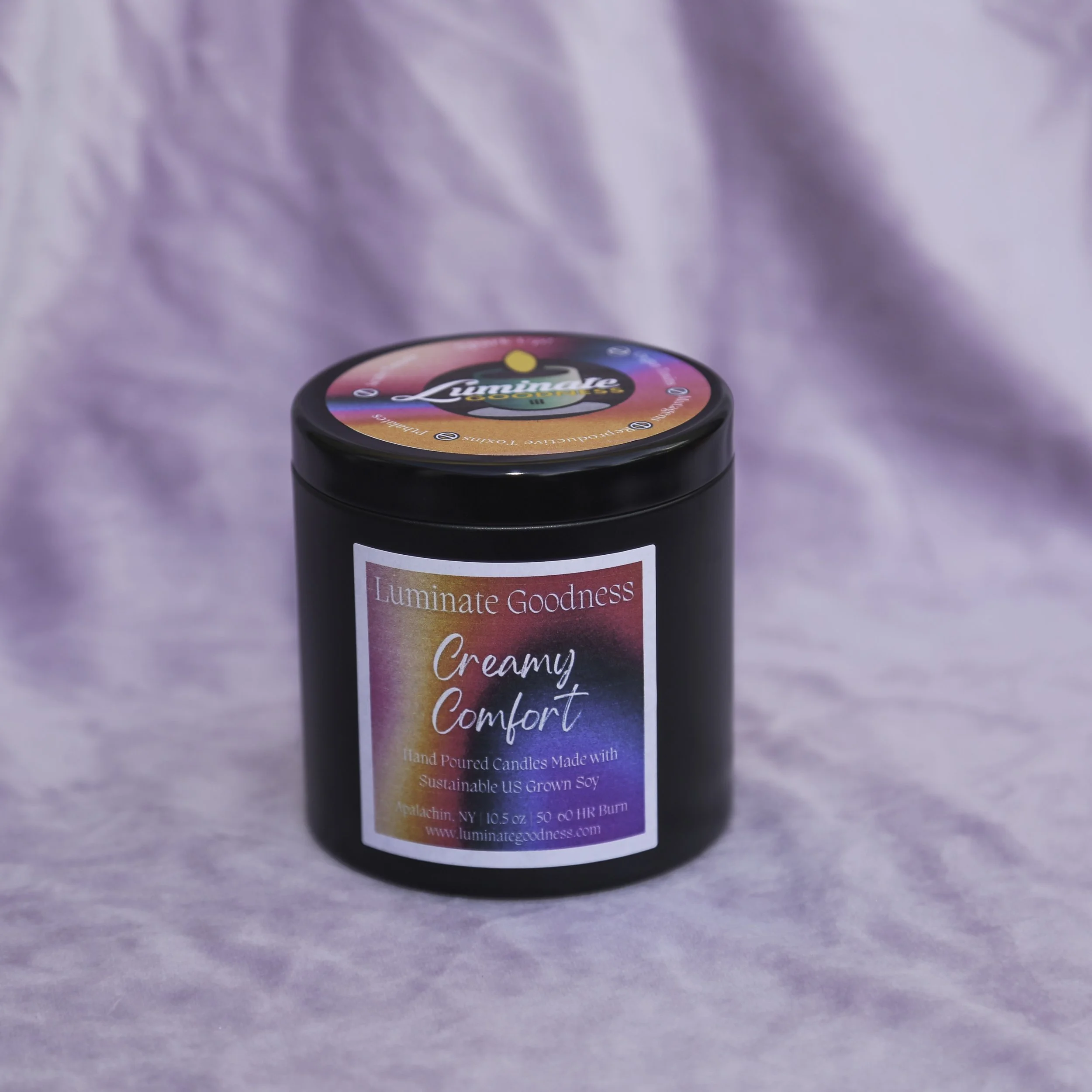 This intricate scent is everything dreams are made for-vibrant, mysterious and warming. Top notes of cardamom and peppercorn fuse with bergamot and blend with middle notes of saffron and a base of vetiver. Candles are hand poured with sustainable US grown soy wax in 10.5 oz tins with a burn time between 50-60 hours. Lead and zinc free wicks composed of cotton.